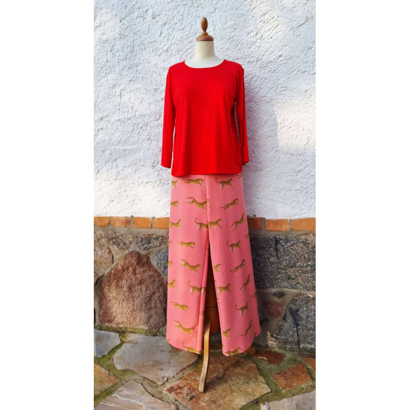 Shirt ¾-Arm - rot + Hose-Panther  - rosé Vergrößern
