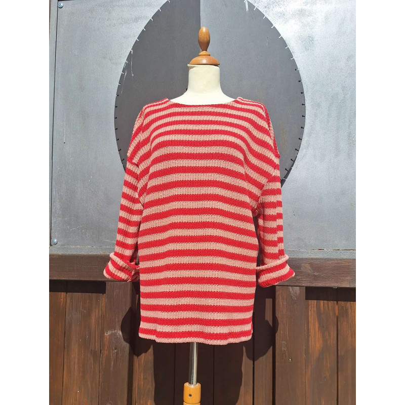Pulli - Streifen - rot - rosa